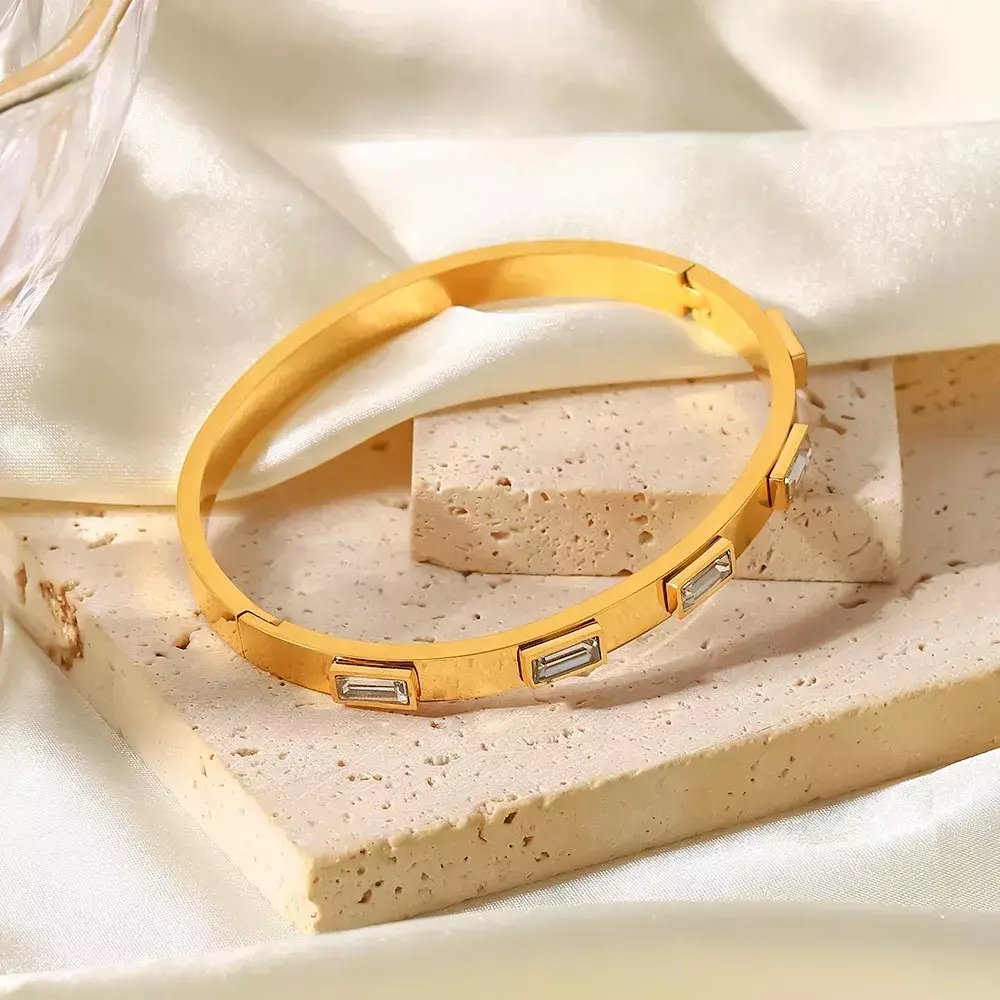 Pieza de acero 316L doble laminado en oro 18K, posee incrustaciones de Cristal K9 GLASS.*